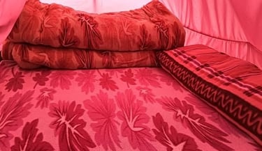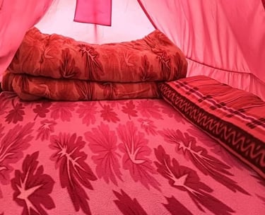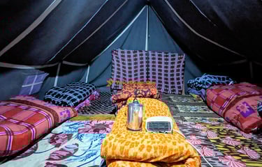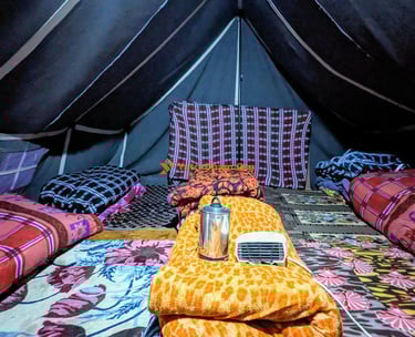 Spacious Himalayan tents with all essentials for a peaceful night near the temple.